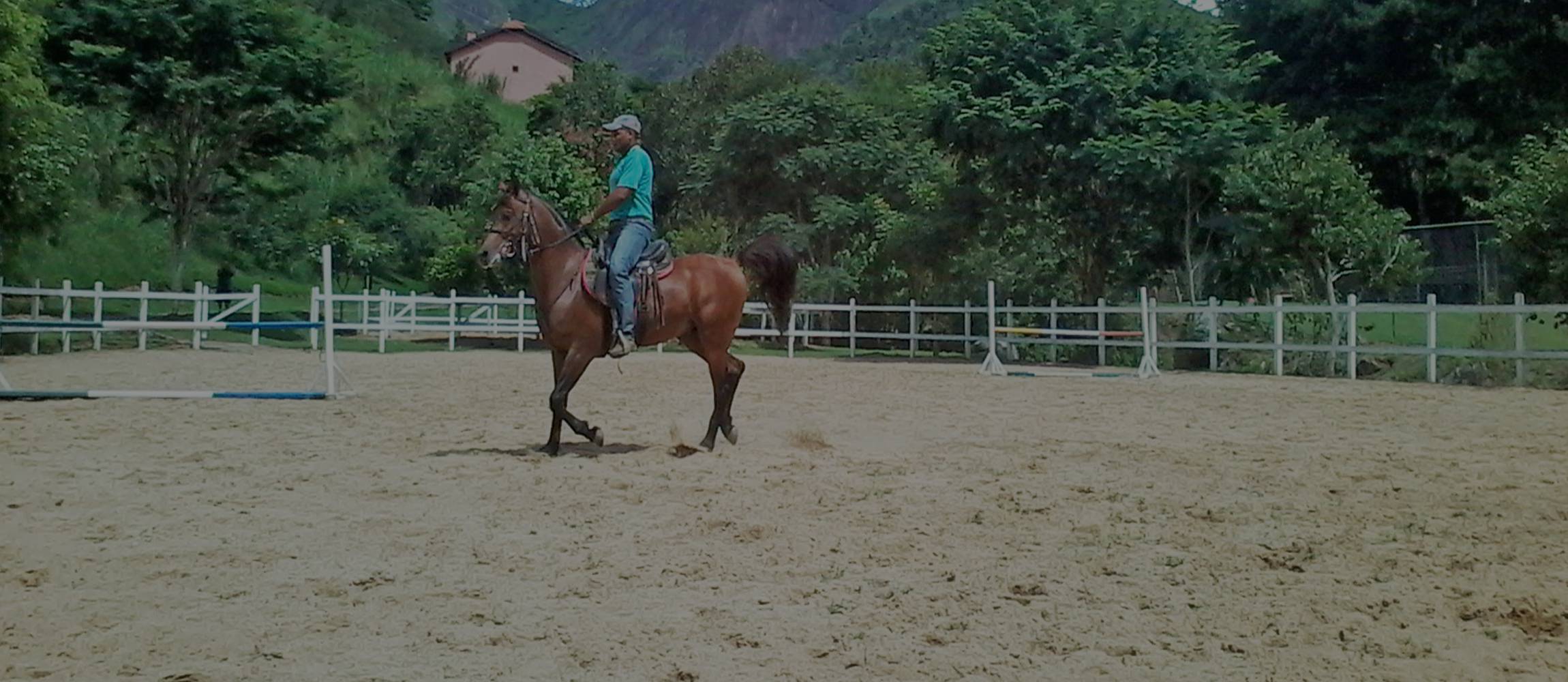 Hípica para locação de baias e passeios a cavalos, com dois picadeiros abertos e um picadeiro coberto.